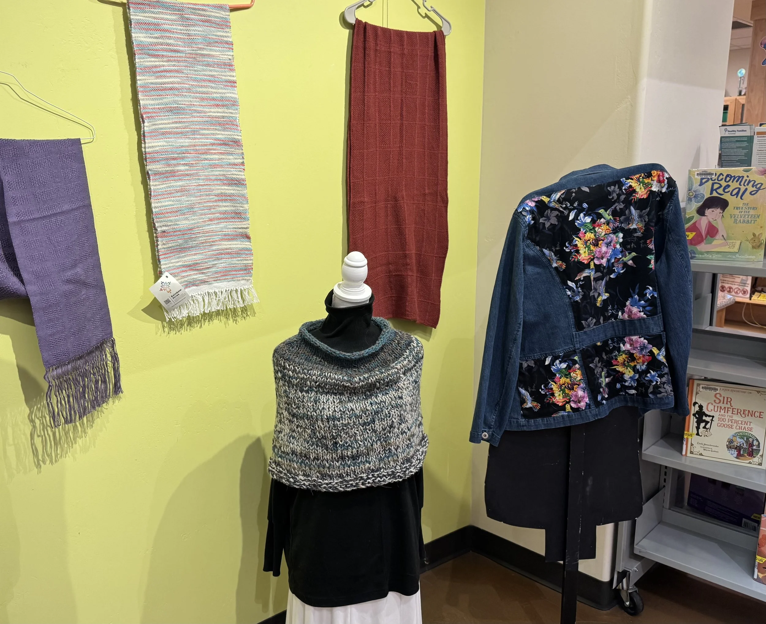 Starting March 3rd and going through April 9th, our guild has a display of items made by our members at the Camp Verde library. This display coincides with the upcoming AZ Fiber Festival. Here are some pics of our display!